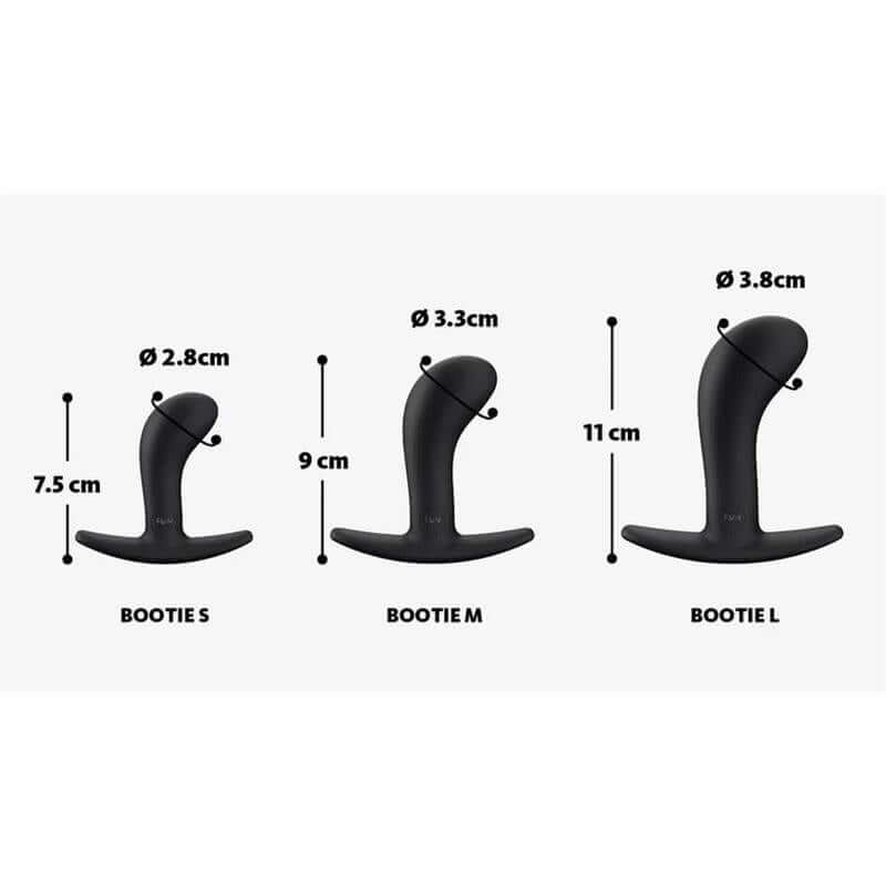 Bootie L Anal Plug Black is a large anal plug made from flexible silicone, designed to provide gentle fullness with controlled, comfortable insertion. Its tapered tip, slim curved shape, and narrow flexible base make it a practical progressive size option for users moving beyond smaller plugs.