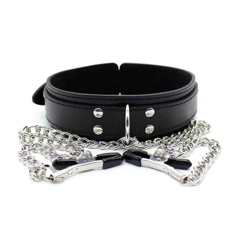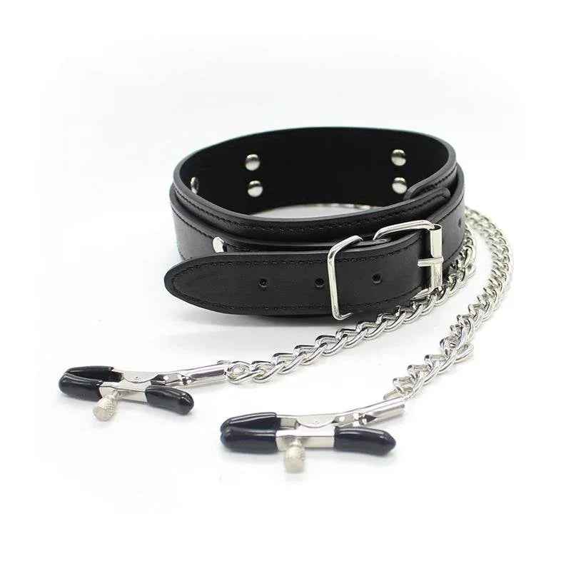 Tõstke intiimsed hetked uuele tasemele meie musta värvi kaelarihmaga, millel on nibuklambrid ja metallkett. See julge aksessuaar ühendab terava disaini ja põneva piirangu, et sütitada teie meeled ja muuta magamistoa mängu. Reguleeritav kaelarihm tagab mugava ja kindla sobivuse pikemaks kandmiseks, samal ajal kui kinnitatud nibuklambrid pakuvad täiuslikku naudingut ja kiusavat valu segu.