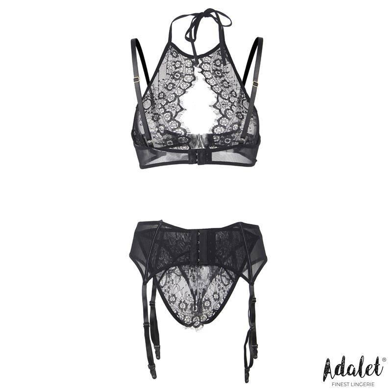 Súprava spodnej bielizne Nisa od Adalet je odvážny trojdielny komplet navrhnutý tak, aby oslavoval vaše krivky s istotou a pohodlím – ideálny na intímne večery, boudoir fotenia alebo významné chvíle. Veľkosť 44-46, táto súdržná čierna čipkovaná súprava sa prispôsobuje vašim pohybom a zároveň je lichotivá a podporná.