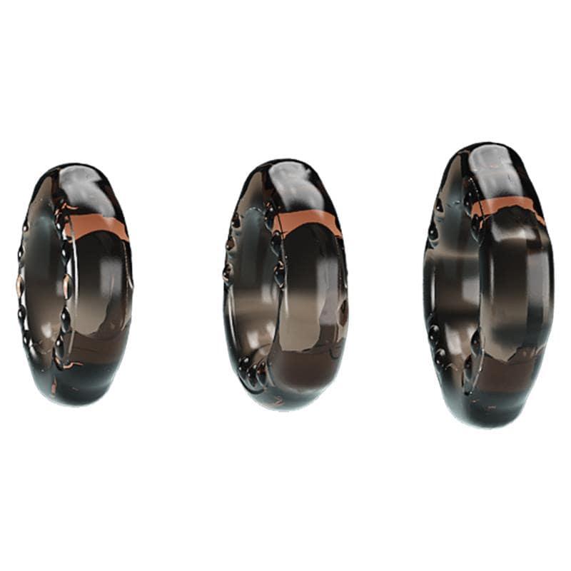 Всеки пръстен може да се носи около ствола или в основата близо до тестисите, давайки ви гъвкави опции за усещане и контрол. Комплектът включва три размера за адаптивно прилягане: 4.4 см, 3.8 см и 3.9 см.
