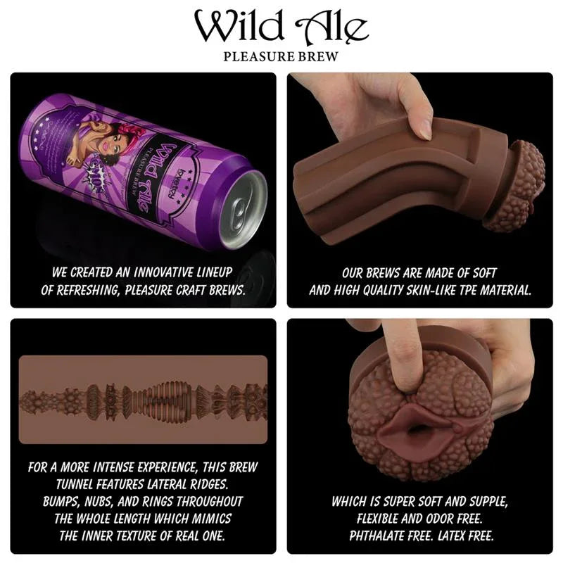 Pleasure Brew Мастурбатор — Vagina Wild Ale е играчка, вдъхновена от бира, с реалистична форма, предназначена за интензивно самостоятелно удоволствие. Изработена от висококачествен мек TPE материал, тя се усеща изключително като истинска кожа — много мека, гъвкава и без мирис. Материалът е без фталати и латекс за по-безопасна и безгрижна игра.