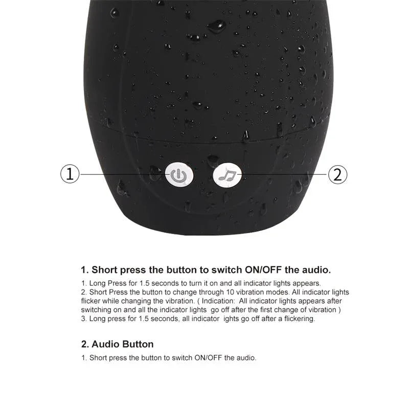 Pro zapnutí stiskněte a podržte tlačítko zapnutí/vypnutí po dobu 3 sekund. Každým stiskem přepínáte vibrační režimy a speciální tlačítko pro zvuk vám umožní poslouchat vestavěné zvuky pro intenzivnější zážitek.