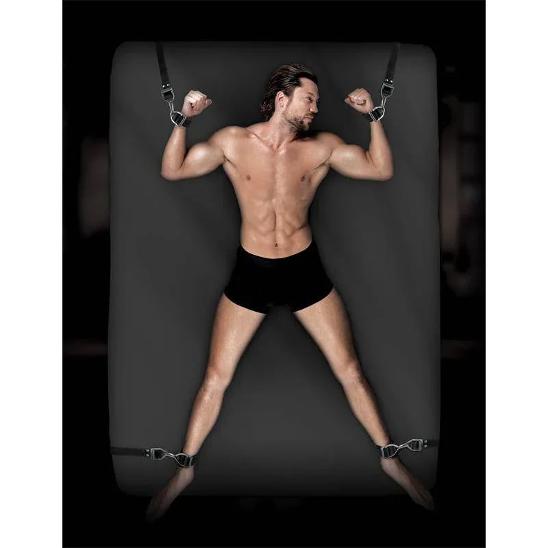 COMMAND. Lavet til at lege hårdt. Under-madras Bondage Stropper forvandler din seng til en bondagelegeplads. Designet til sikkert at glide under din madras, fastgøres de tykke, holdbare nylonstropper med industriel styrke til fire robuste Heavy-Duty Manchetter med justerbare låseringe i rustfrit stål, hvilket giver en kontrolleret, tilpasset pasform hver gang. (Ingen sengepæle eller sengegavl nødvendige.)