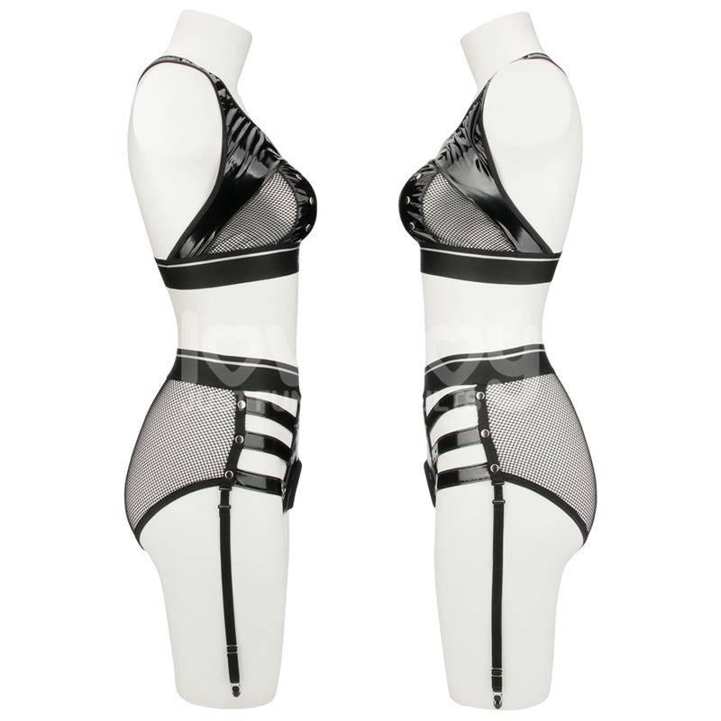 Dieses Set beinhaltet ein sexy Top und passende Slips mit abnehmbaren Strumpfhaltern, die Komfort und gewagtes Design nahtlos verbinden und jede Kurve Ihres Körpers elegant betonen. Das Set ist mit silbernen Nieten verziert, die einen zeitgemäßen Akzent setzen, der sowohl fesselnd als auch schick ist.