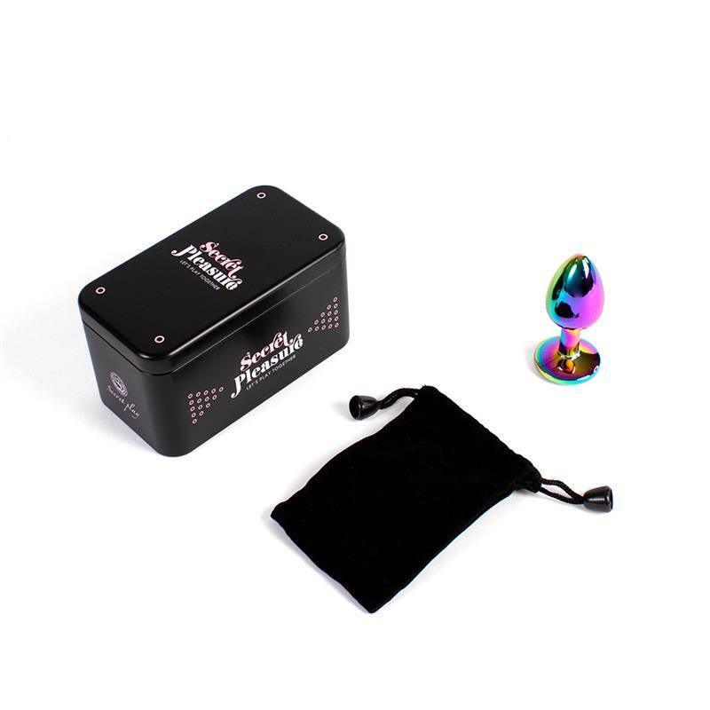 Entdecken Sie gesteigertes Vergnügen mit dem Regenbogen Metall Analplug Größe S. Gefertigt aus ultra-glattem, nickelfreiem Aluminium, ist dieser kompakte Plug ideal für Anfänger, die sich in die anale Spielwelt wagen, oder für alle, die intensivere Empfindungen suchen.