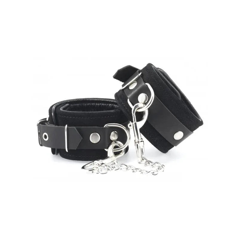 Hochwertige Fesselung, entwickelt für zuverlässige Leistung bei Solo-Sessions oder Spiel mit Partner. Gefertigt aus echtem schwarzem Leder mit einer luxuriösen Wildleder-Außenseite für Stil, Komfort und dauerhafte Qualität.