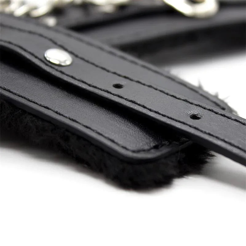 Jeder selbstrespektierende BDSM-Liebhaber sollte gute Knöchelmanschetten in seiner Sammlung haben. Diese Knöchelmanschetten verfügen über ein weiches, seidiges Innenfutter, perfekt für zusätzlichen Komfort und Vergnügen. Die Manschetten sind vollständig verstellbar und die Kette kann dank des Karabiners abgenommen und wieder angebracht werden. Verwenden Sie sie an Handgelenken oder Knöcheln.