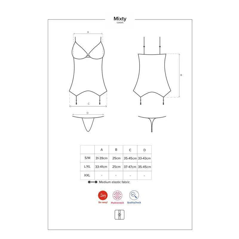 Warum Sie es lieben werden: Das Mixty Korsett und der String verbinden verführerische Eleganz mit einer modernen, taillenschmeichelnden Silhouette – perfekt für intime Abende oder verspielte Dessous-Fotoshootings. Der elastische Stoff sorgt für Komfort und Bewegungsfreiheit, während die modellierte Form erhalten bleibt.