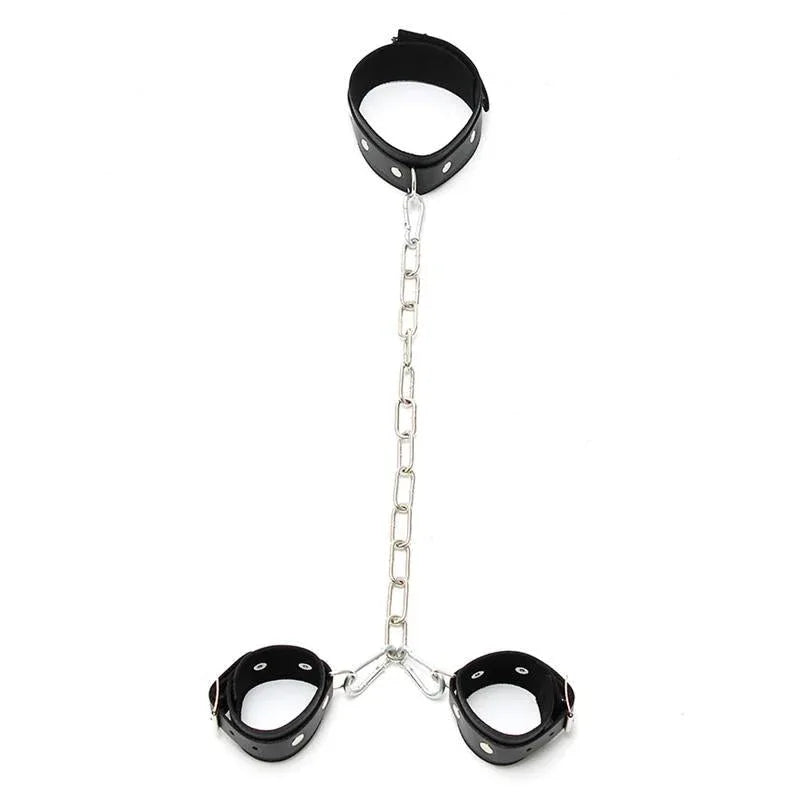 Αφήστε τη φαντασία σας να πετάξει καθώς αυτός ο συνδυασμός περιλαίμιου λαιμού και δεσμών καρπών προσθέτει μια πινελιά τόλμης στις ερωτικές σας στιγμές. Κατασκευασμένο για άνεση και έλεγχο, σας βοηθά να εξερευνήσετε το συναινετικό παιχνίδι εξουσίας με ασφάλεια και στυλ.