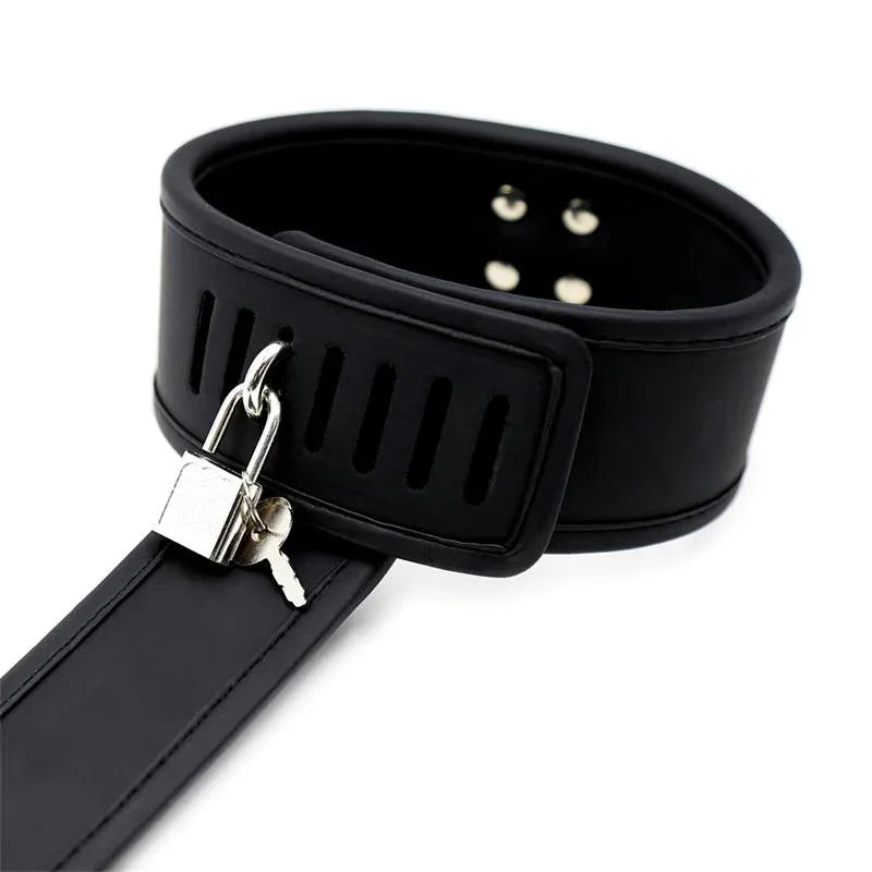 Στο κολάρο θα βρείτε ένα δαχτυλίδι ώστε να μπορείτε να χρησιμοποιήσετε το αγαπημένο σας λουρί. Αυτές οι χειροπέδες είναι ρυθμιζόμενες, φυσικά, αλλά δεν θα το κάνουμε τόσο εύκολο για τον υποτακτικό σας, γι' αυτό κλείνουν με λουκέτο, ώστε να έχετε τον έλεγχο ανά πάσα στιγμή.
