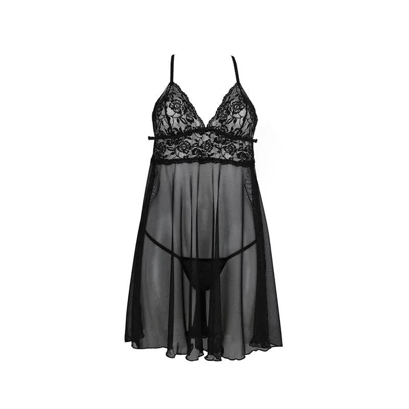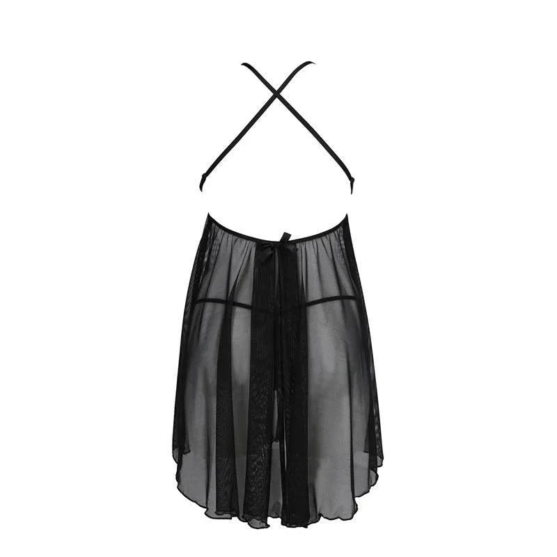 Leslie Chemise και String — Ζήστε τη γοητεία αυτού του σετ chemise και string, όπου τα διαφανή υλικά συναντούν την λεπτή, απαλή και μεταξένια δαντέλα για να δημιουργήσουν μια κολακευτική σιλουέτα που αναδεικνύει τις φυσικές σας καμπύλες. Τα διαφανή υφάσματα σε συνδυασμό με την απαλή, μεταξένια δαντέλα προσφέρουν μια γοητευτική εμφάνιση που είναι τόσο κομψή όσο και άνετη.