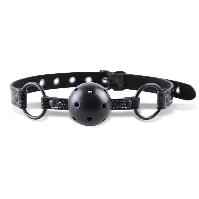 The centerpiece is a breathable ball that keeps air flowing while you maintain control, ensuring comfort for extended wear. The gag is adjustable for a secure fit, and it features metal rings on the sides to connect with your favorite toys and buckles for seamless integration into your scene.