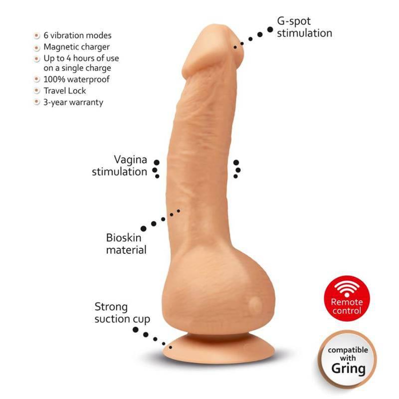 This super realistic vibrator is made of hypoallergenic silicone that makes it odorless. It is totally waterproof, perfect for enjoyment in the shower. It features an ergonomic design with a super realistic tone and feel. Its motor is powerful as well as silent, with which you can enjoy 6 vibration functions with variable intensities. You can comfortably charge it with its magnetic USB charger and take it wherever you want thanks to its travel lock (press the + button for 2 seconds to unlock).