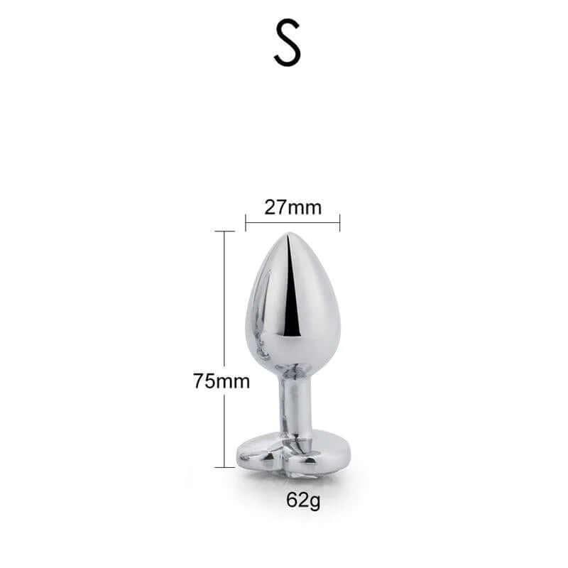 This one in particular is a size S anal plug with a heart-shaped base. At the back, a beautiful heart base with a ruby??red jewel allows you to have a most erotic vision while you experiment in the most pleasant anal games.