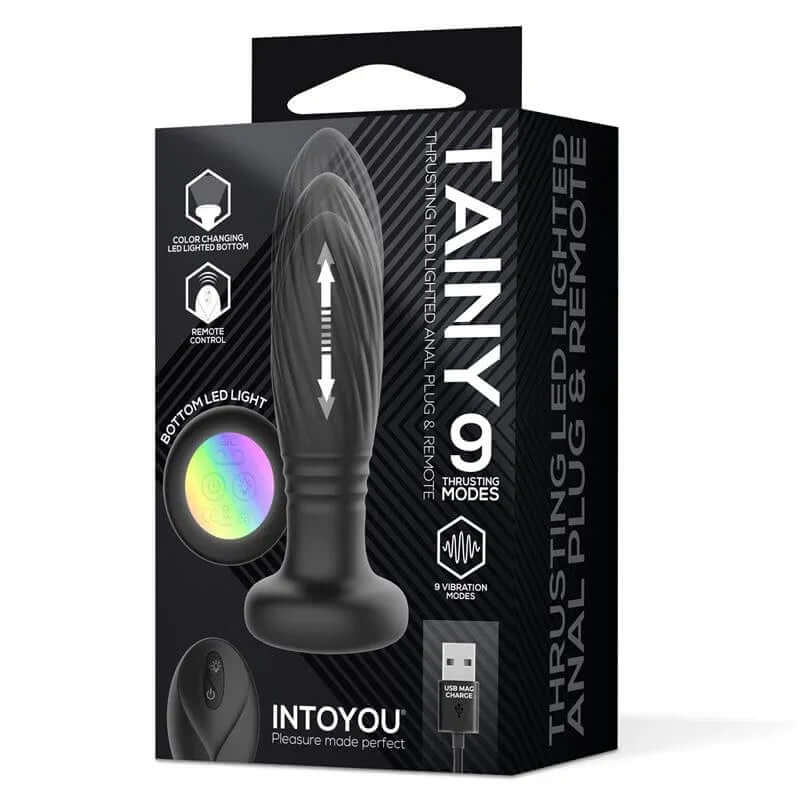 Meet Tainy from Intouyou — a premium anal plug built for versatility and discreet pleasure. This multifunctional device combines 9 thrusting modes with 9 vibration functions, letting you tailor sensations from gentle tickles to powerful waves of pleasure. You can mix and match movements and vibrations or enjoy them separately for every mood and moment. Designed for ease and control, Tainy includes a remote for hands-free play so you can enjoy pleasure while you use your hands for other activities. The base houses the control button and features LED lights that change color according to the operating mode, adding a visually stimulating touch to your session.