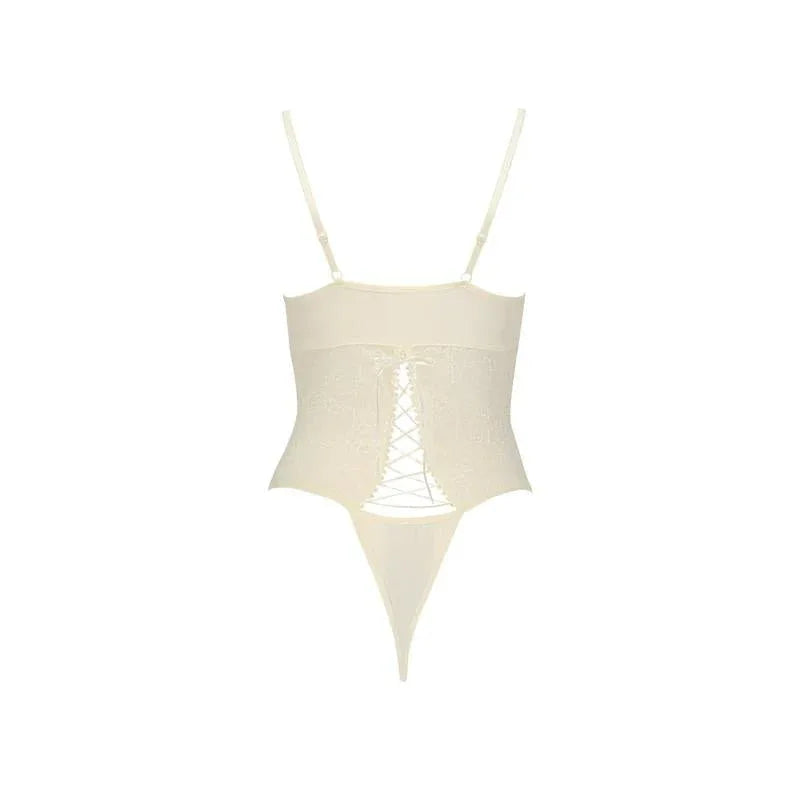 Bianca Body Ecru is a matte-white, lace-trimmed one-piece lingerie designed for intimate moments and boudoir photography. It offers an elegant silhouette with comfortable stretch, crafted for those who value refined sensuality and versatile styling.