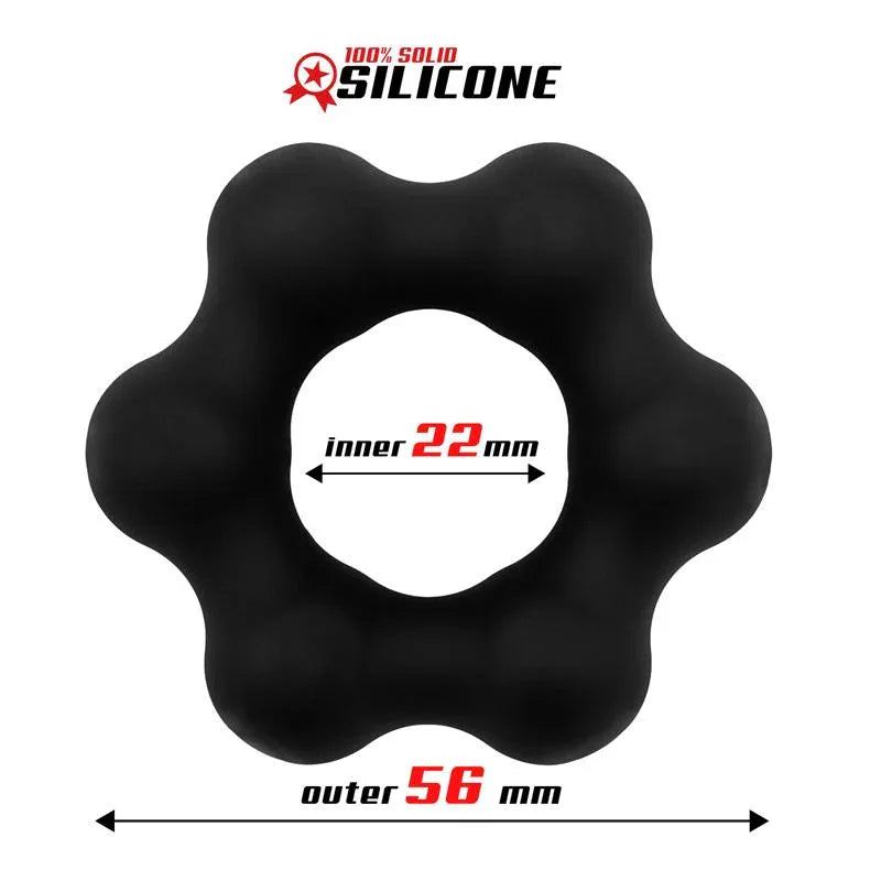 A ring for those looking for a different pleasure. This ring has a rounded shape but with 5 balls along its body, perfect to enjoy an extra pleasant night. It is 100% liquid silicone, which is super useful so that although it retains the elasticity necessary for extra comfort, it is also strong for super powerful erections.
