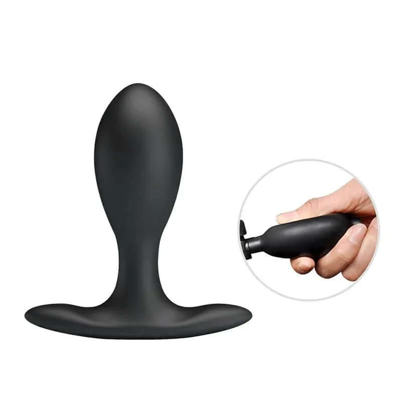 Inflatable plug with internal ball weight — inflate after insertion for customized fullness; internal weight helps maintain steady, pleasurable pressure.
