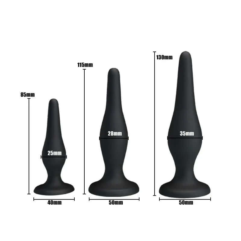 Pack 3 Butt Plug Mini Anal Kit is a silicone-based set designed for progressive anal exploration. This kit includes three plugs with different measurements so you can gradually increase the size or use any size that suits you best.