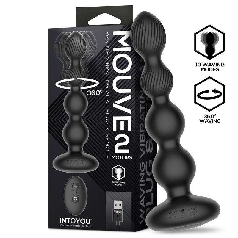 Plug anal Mouve avec oscillation et vibration, télécommande — 2 moteurs de la marque Intouyou combine un corps allongé à une forme unique avec deux moteurs pour offrir une gamme polyvalente de sensations. Profitez de tout, des picotements légers aux vagues profondes et rythmiques, avec la possibilité d'associer mouvement et vibrations ou d'utiliser chaque fonction séparément selon votre moment.