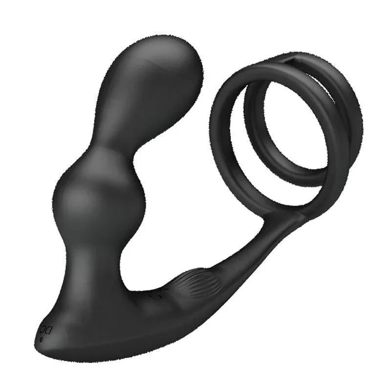 Ovaj prsten za penis s analnim čepom ima bežični daljinski upravljač. Prstenovi sigurno drže penis i testise, idealni za održavanje erekcije duže vrijeme zbog učinka zastoja krvi. Vibrirajući analni čep, sa svojim posebnim dizajnom kuglice i 12 različitih načina vibracije, može pružiti intenzivnu analnu stimulaciju. Prekriven je silikonom s teksturom mekog dodira koja ugodno prianja uz kožu.