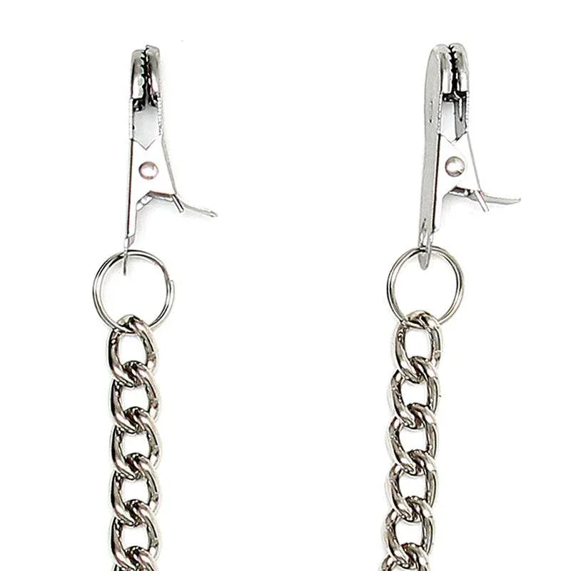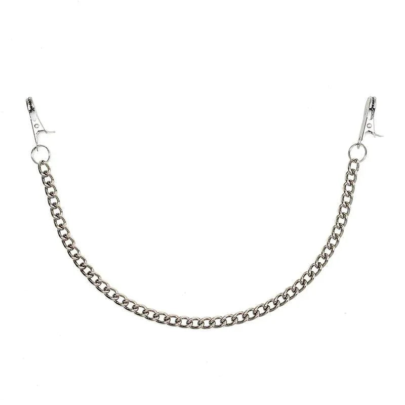 Fedezze fel az intenzívebb érzéseket a Mellbimbócsipesz Lánccal – egy tartós fém csipeszkészlettel, amely kezdőknek és fetisizmus kedvelőknek egyaránt készült. Egyszerű, élre helyezett kialakítása és letisztult ezüstös felülete megbízható stimulációt nyújt az intim pillanatokban.