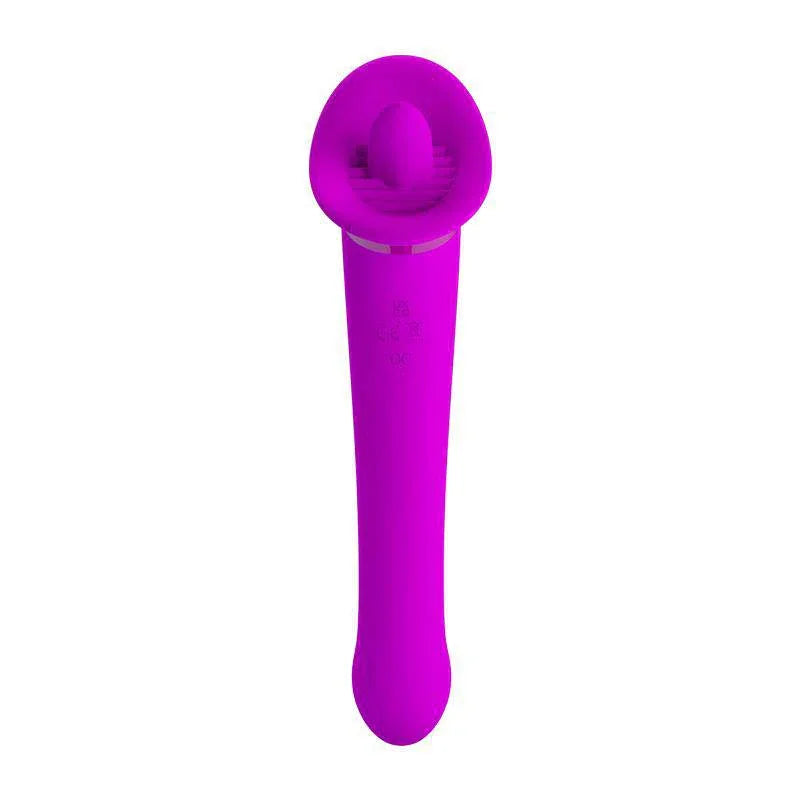 Estimulador doble con 12 funciones de lengua de estimulación oral y estimulación vaginal con 12 funciones de vibración. Es perfecto para usar a solas, en los preliminares o para jugar con tu pareja, es recargable por USB e impermeable.