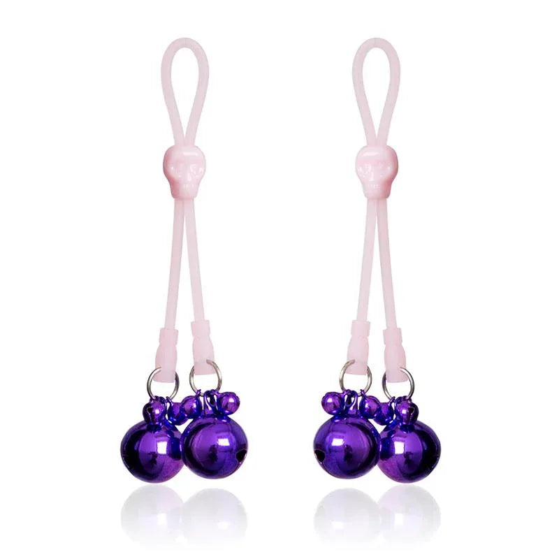 Tepelklemmen met schedels en ringen, silicone en metaal, roze/paars