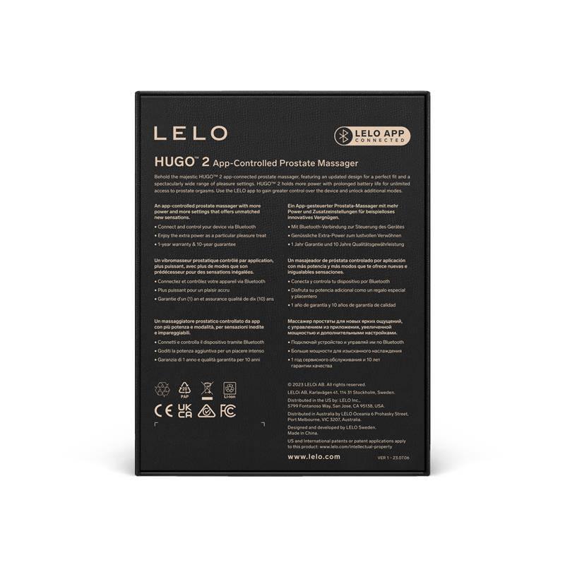HUGO? 2 je majestátny masážny prístroj na prostatu, ktorý je možné pripojiť k aplikácii. Má aktualizovaný dizajn, ktorý umožňuje dokonalé prispôsobenie, spolu s 16 neuveriteľnými režimami potešenia. Je výkonnejší a má dlhšie vydržajúcu batériu, ktorá vám poskytuje neobmedzený prístup k prostatickým orgazmom. Je kompatibilný s aplikáciou LELO, ktorá používateľom poskytuje väčšiu kontrolu nad zariadením a možnosť odomknúť ďalšie režimy.