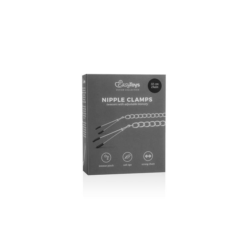 Kliešte na bradavky s pinzetou z kolekcie EasyToys sú vhodné pre každého používateľa. Kliešte sú pevné, ľahko použiteľné a ľahko prispôsobiteľné vašim túžbam. Vďaka váhe kovovej reťaze reťaz jemne ťahá kliešte. Samozrejme, to môže inšpirovať vášho partnera, aby poskytol ešte viac pocitov. Nechajte ho alebo ju chytiť reťaz a jemne ňou potiahnuť a vyrazte spolu na noc plnú kinky dobrodružstiev.